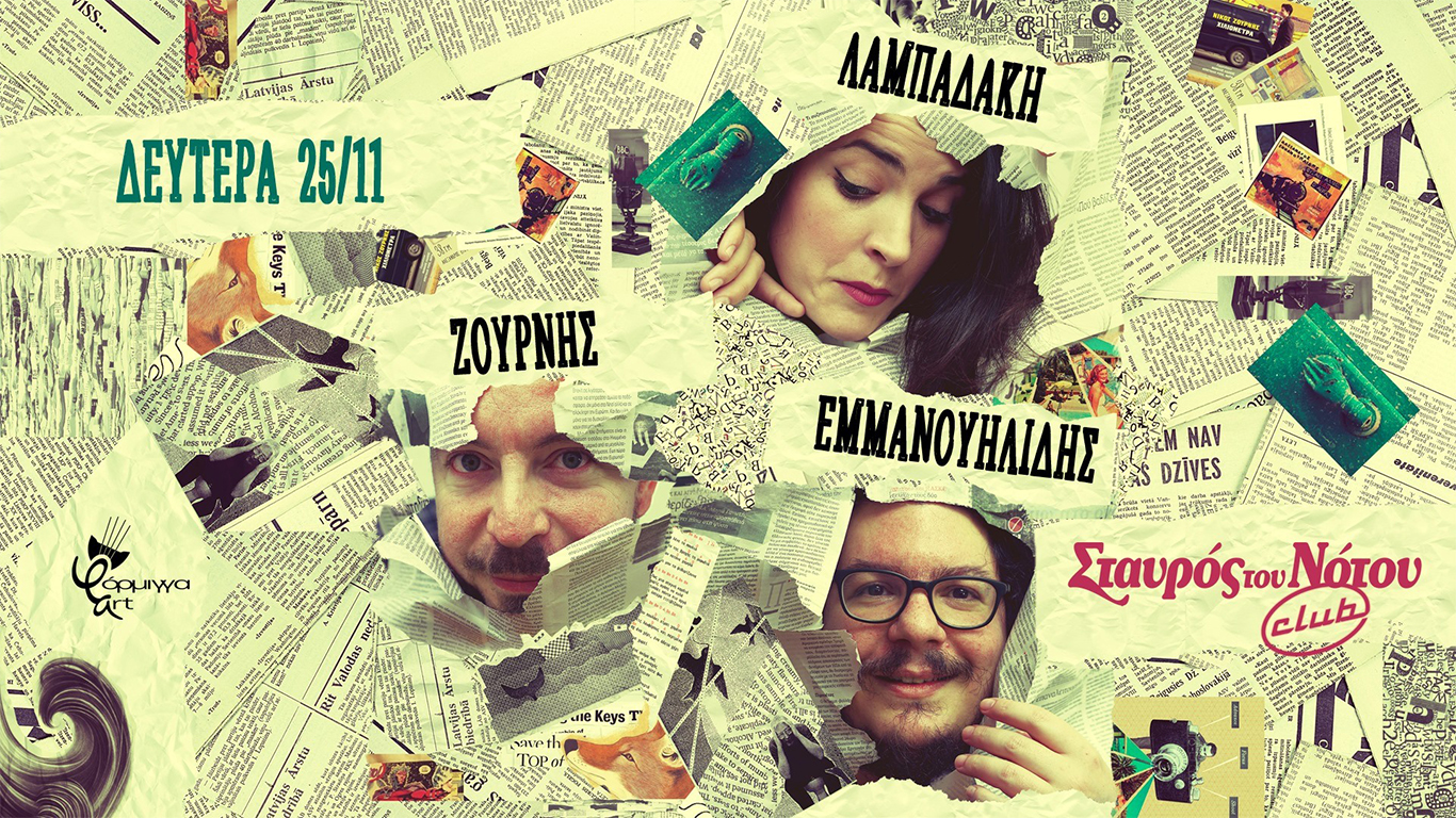 Το υλικό μιας δεκαετίας δυο δημιουργών που συναντήθηκαν στα ίδια μαγαζιά, στους ίδιους διαδρόμους , στα ίδια καφενεία, αλλά ποτέ στην ίδια σκηνή, συνομιλεί με μια νέα φωνή που συγκινεί και γοητεύει. Δύο τραγουδοποιοί που έχουν αγαπήσει τη γυναικεία φωνή στα τραγούδια τους, διαλέγουν αντιπροσωπευτικούς σταθμούς της πορείας τους και δημιουργούν ένα κολάζ στίχων και μελωδιών με συνδετικό κρίκο τη Ναταλία Λαμπαδάκη.