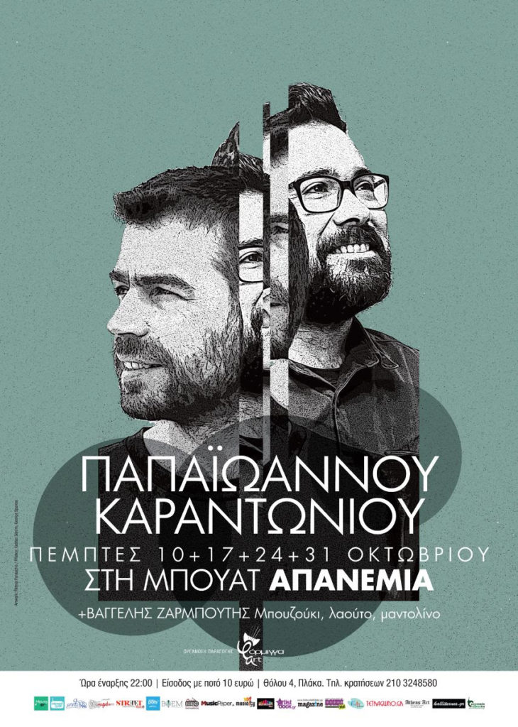 Ο Πάνος Παπαϊωάννου και ο Χρυσόστομος Καραντωνίου μας προσκαλούν τις Πέμπτες του Οκτώβρη στην ιστορική μπουάτ «Απανεμιά» στην Πλάκα.